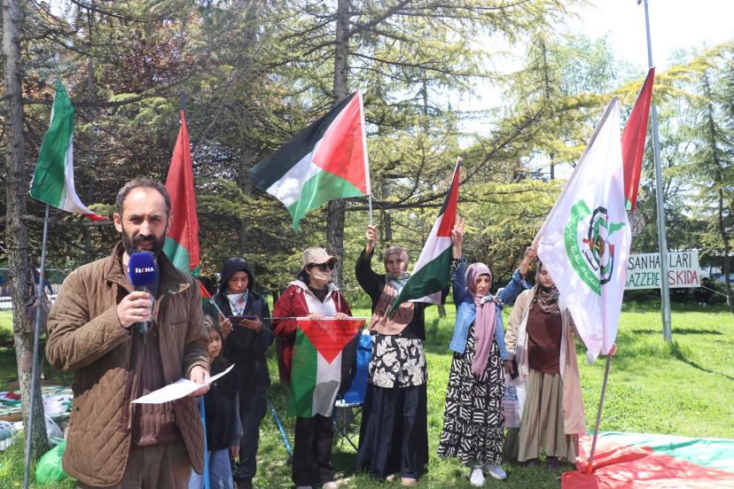 Son olarak Şanlı, "İdam edilmeyi bekleyen esir kardeşlerimiz için yüksek sesle haykırıp, sözde değil özde adam gibi tepki verip harekete geçmezsek, yarınlarda en iyi yaptığımız şey olan, cenaze namazlarını kılıp şiddetli bir şekilde kınamak olacak maalesef. Artık bir tercih yapmak zorundayız. Ya ümmet olmanın bilinciyle konum alıp girdikleri esaret zincirlerini kırarak varlık gösterip, Gazze için Kudüs için onurumuz için mücadele edenlere destek olarak emperyalist ve siyonistlerden bölgemizi temizleme yoluna girilmeli... Ya da aciz hayatlarına devam edip etmemeye bir karar vermelidir ümmet. Mazlum coğrafyaların, masun bırakılmış bacılarımızın, esir edilmiş kardeşlerimizin, korku dolu anlara terk edilmiş çocuklarımızın artık bekleyecek vakti kalmamıştır." diye konuştu. Basın açıklaması sonrası grup, ABD Büyükelçiliği önünde eylemlerini saat 20.00'e kadar deva ettirecek.