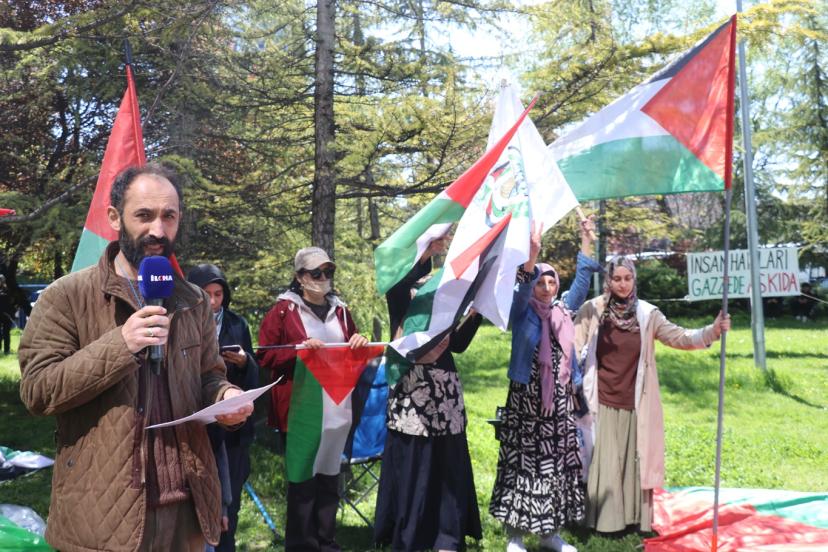 Gazze için hiçbir adım atılmadığını dile getiren Şanlı, "Bu acı gerçeği görmezden gelerek, hiçbir şey yokmuş hatta her şey normalmiş gibi konum aldıkça kardeşlerimizin acısı dinmiyor, Gazzeli çocuklar ıslak çadırlarda aç ve korku içinde kalmaktan kurtulmuyor. 2 yıl boyunca tepelerine bomba yağmasını izledik, bundan sonrada yavaş yavaş ölmelerini mi izleyeceğiz. Tam tersine, Filistin davasını gündem eden eylemcilere haksız göz altılarla, işkencelerle, türlü türlü baskılar uygulayıp toplumsal hareketlenmenin engellenmesini de mi izleyeceksiniz. Filistin’e dair faaliyetler ve tersten yapılan haksızlıklar ana akım medyada hatta sosyal medyada sansürlenmektedir. Tam tersine dillendirilip, bilincin ve tepkiselliğin artırılması gerekmez mi?" ifadelerine yer verdi.