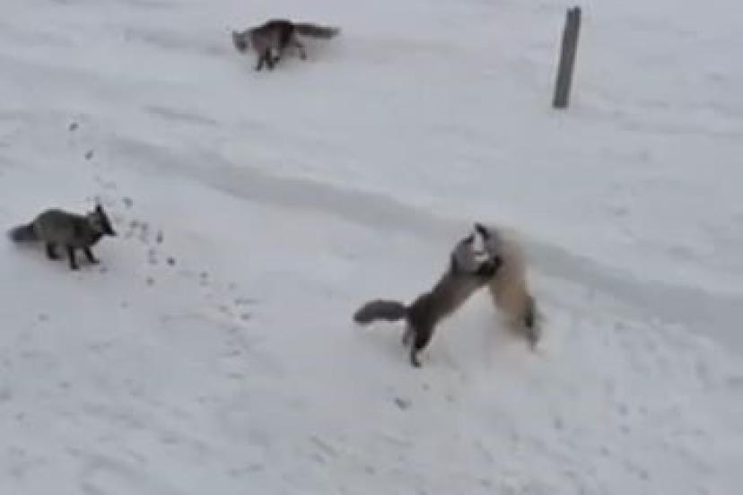 Karayolları personeli tarafından beslenen tilkiler, kendi aralarında ekmek kavgasına düştüler. Uzun bir süre kavga eden tilkiler daha sonra verilen yiyecekleri yemeye başladı. Bu güzel anlar ise cep telefonu ile kayda alındı.
