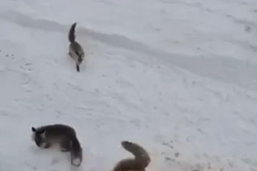 Ardahan’da tilkilerin ’ekmek kavgası’ kamerada