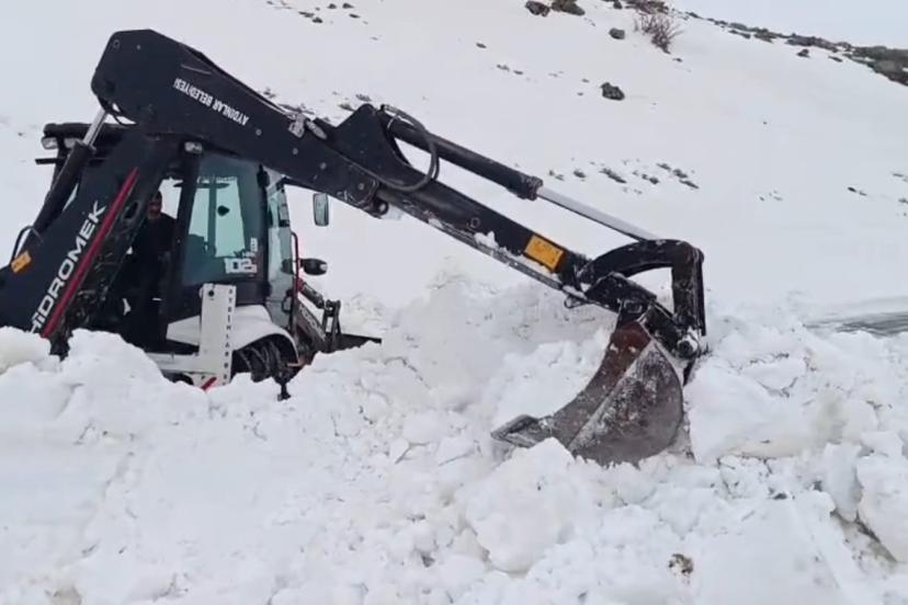 Bitlis’in Adilcevaz ilçesine bağlı Süphan Dağı eteklerindeki Aydınlar beldesinde karla mücadele çalışması devam ediyor.