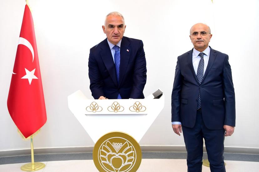 6 Şubat 2023 depremleri sonrası yeniden ayağa kaldırılan kültür varlıklarındaki çalışmaları yerinde görmek üzere Malatya'ya gelen Bakan Ersoy, Büyükşehir belediye Başkanı Er'i makamında ziyaret etti.