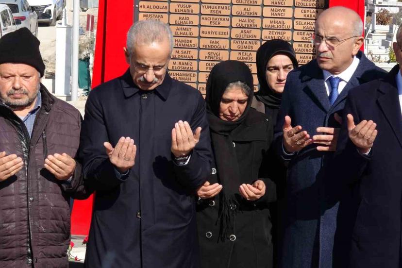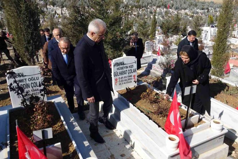 Ulaştırma ve Altyapı Bakanı Abdulkadir Uraloğlu, ziyaret sırasında deprem şehitlerinin mezarlarına karanfil bırakarak dua etti. Şehit yakınlarıyla da bir süre görüşen Uraloğlu ailelere başsağlığı dileyerek sabır temennisinde bulundu.