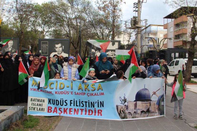 Batman'da sivil toplum kuruluşları, Mescid-i Aksa’nın ibadete kapatılması ve işgal rejiminin Filistinli esirlere yönelik idam yasasına sert tepki göstererek, uluslararası kamuoyuna çağrıda bulundu.