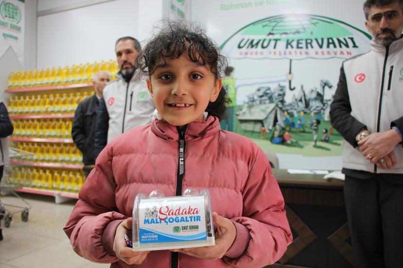 Kumbarasını bağışlayan Medine Akgüdük "Umut Kervanından aldığım kumbaraya harçlığımı biriktirerek içine koydum. Umut Kervanına getirip Gazze'deki kardeşlerime hediye etmek istiyorum. Rabbim onların yardımcısı olsun." dedi.
