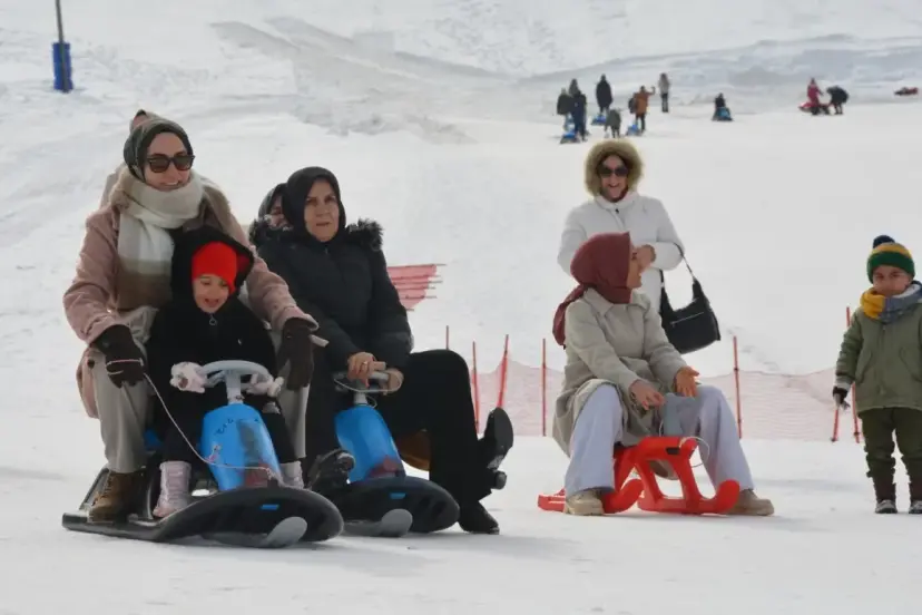 Bitlis'in Tatvan ilçesinde düzenlenen 'Aile ve Nüfus 10'uncu Yılı' etkinliği çerçevesinde anneler ve çocukları, El Aman Kayak Merkezi'nde birlikte kızak kayarak keyifli anlar yaşadı.
