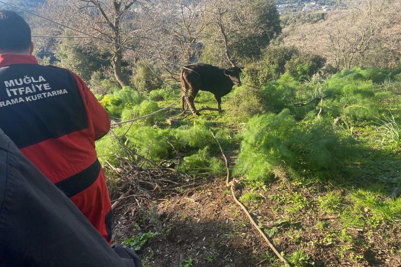 MUĞLA’nın Bodrum ilçesinde, kuyuya düşerek mahsur kalan buzağı, ekiplerin çalışmasıyla kurtarıldı.