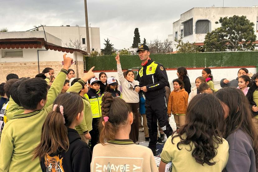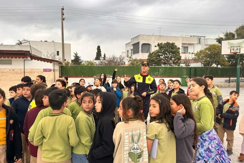 Bodrum İlçe Jandarma Komutanlığı Trafik Kısım Komutanlığı ekipleri, Turgutreis Zeyyad Mandalinci İlkokulu’nda 45 öğrenci ve 5 öğretmene trafik bilinci aşıladı. Eğitimde; okul servislerinde güvenli yolculuk, kask ve emniyet kemeri kullanımı ile bisiklet binme kuralları anlatıldı. Teorik bilgilerin ardından trafik jandarması kıyafeti giyen öğrenciler, yaya ve okul geçitlerinde nasıl hareket etmeleri gerektiğini uygulamalı olarak deneyimledi.