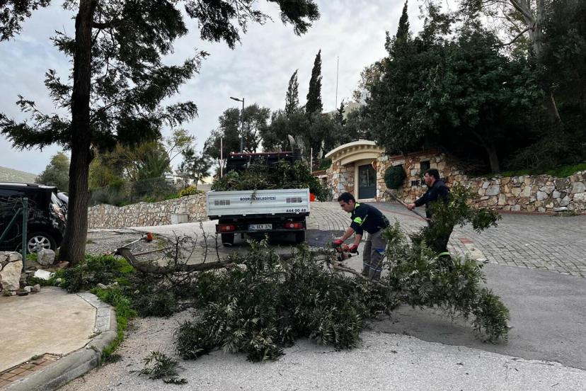 MUĞLA'nın Bodrum ilçesinde, dün sabah saatlerinde başlayıp gece saatlerine kadar etkili olan lodos fırtınasında, Belediyesi Park ve Bahçeler Müdürlüğü 13 ekip, 57 personel ve 13 araç ile sahada görev yaptı.