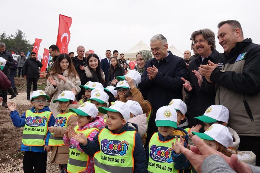 Konuşmaların ardından programa katılan protokol üyeleri ve öğrenciler, belirlenen alanda fidan dikimi gerçekleştirdi.