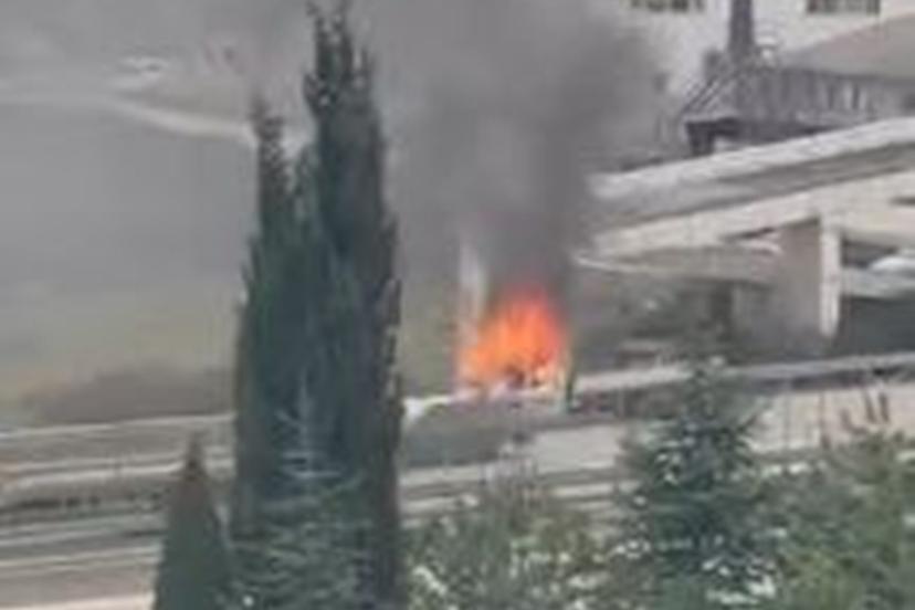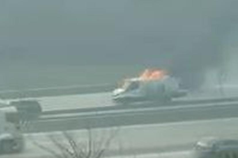 Yanarak bir süre ilerleyen kamyonet, sürücünün kontrolü kaybetmesi sonucu virajda bariyere çarparak durabildi.
