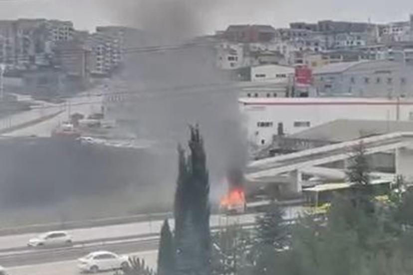 Bursa’nın Nilüfer ilçesi Görükle Mahallesi İzmir Yolu Caddesi’nde hareket halindeki bir kamyonette henüz belirlenemeyen bir nedenle yangın çıktı.