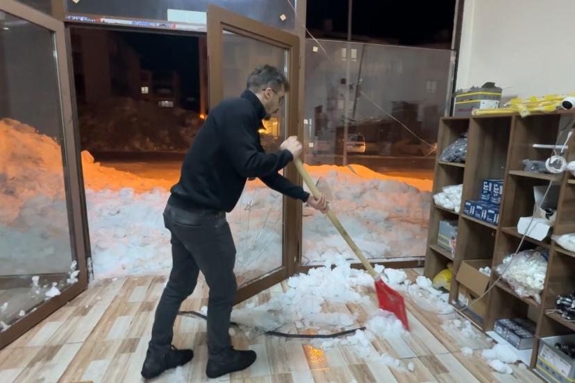 Yaşadığı dehşet anlarını anlatan iş yeri sahibi Cenk Akbıyık, raflara malzeme dizdiği sırada olayın gerçekleştiğini belirterek, "Akşam saatlerinde yeni gelen malzemelerle ilgileniyordum. Tam camın kenarındayken büyük bir patlama sesi duydum. Buzlu kar kütleleri camları kırıp çerçeveleri içeri fırlattı. Az daha cam parçalarının hedefi olacaktım, ölümden döndüm. Büyük bir korku ve panik yaşadık. İş yerimde ciddi maddi hasar var, mağdur oldum. Bu dev kar kütlelerine karşı acilen önlem alınması gerekiyor" dedi.