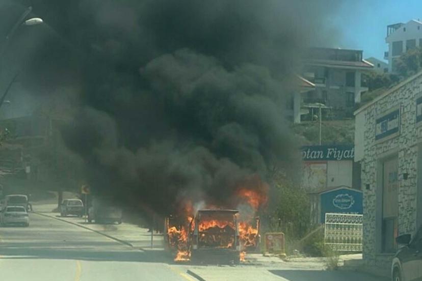 MUĞLA'nın Datça ilçesinde park halindeki bir hafif ticari araçta yangın çıktı.