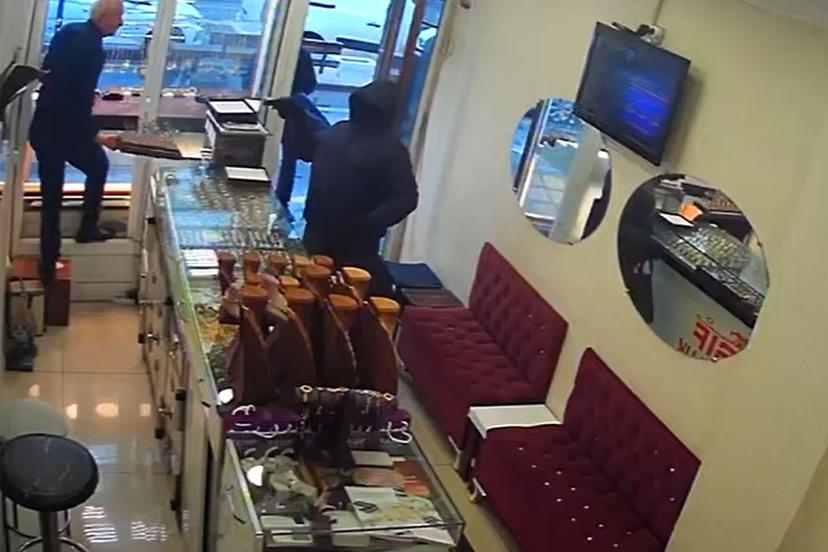 Görüntülerde, soyguncularla mücadele eden kuyumcu esnafının, zanlılardan birinin elindeki silahı alarak dipçiğiyle karşılık vermeye çalıştığı anlar yer aldı. İlerleyen yaşına rağmen sakin ve soğukkanlı tavrını koruyan esnafın, tüm çabalarına rağmen saldırganları durduramadığı görüldü.