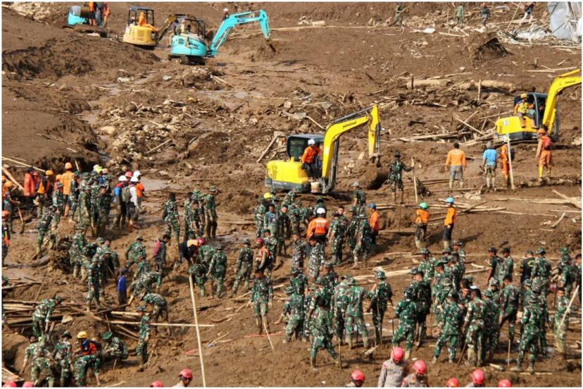 Batı Cava’da günlerce etkili olan şiddetli yağışların ardından Batı Bandung bölgesinde meydana gelen toprak kaymasında, çok sayıda yerleşim alanı toprak altında kaldı. Arama kurtarma ekipleri, toprak yığınları altında kalan birçok kişinin cansız bedenine ulaştı.