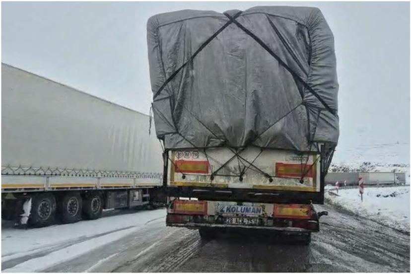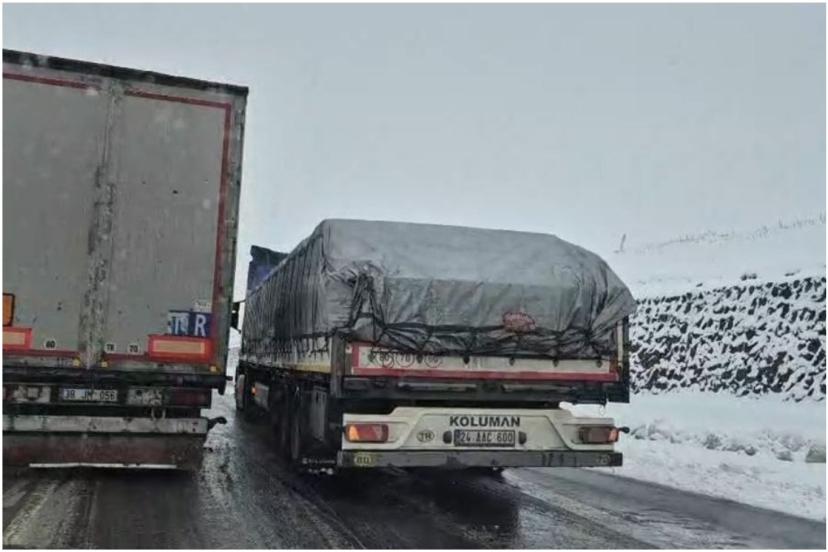 Erzurum-Çat kara yolunun yüksek kesimlerinde etkili olan kar yağışı ve fırtına nedeniyle tırlar yollarda mahsur kaldı.