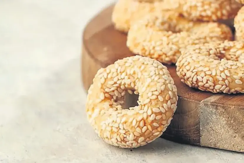 YAPILIŞI: Yumurta akı dışındaki tüm malzemeleri bir kaba koyup, şekil verecek kıvama gelinceye kadar yoğuruyoruz. Daha sonra hamurdan parçalar koparıp şekillendiriyoruz. Üste gelecek kısmını, önce ayırdığımız yumurta akına, sonra ise bir tabağa koyduğumuz susama batırıyoruz ve tepsiye diziyoruz. 160 derecede önceden ısıtılmış fırında üzeri kızarana kadar pişiriyoruz.