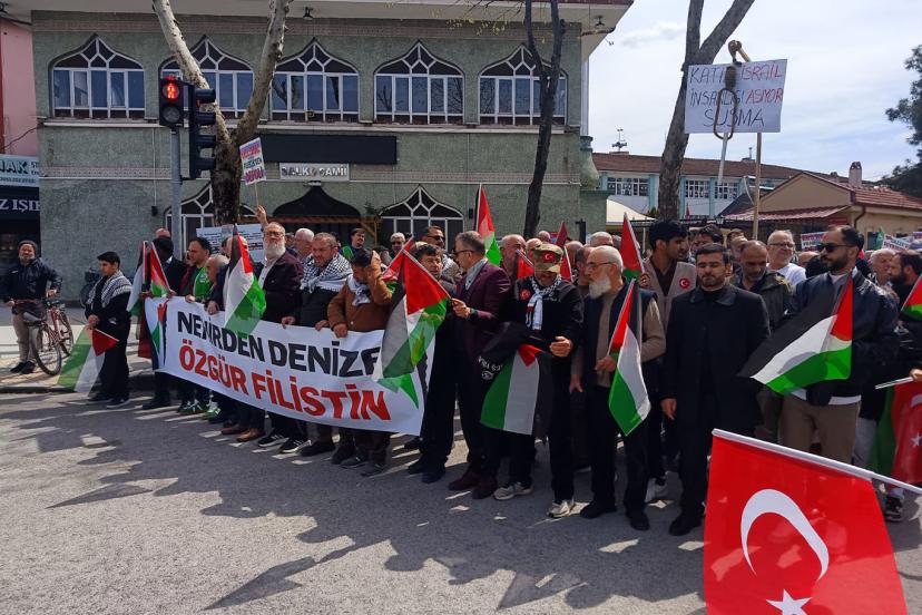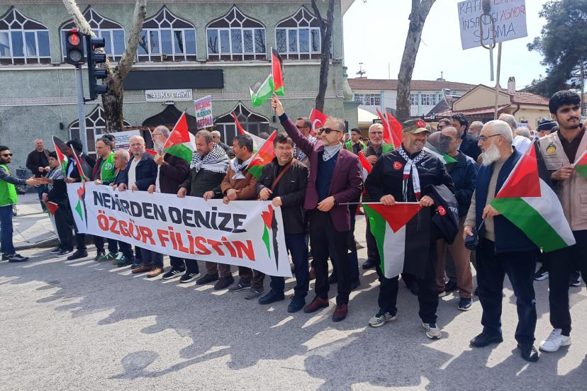 Yola çıkacak olan filoya destek amacıyla Adapazarı Salko Camii önünde bir araya gelen topluluk, ellerinden Filistin ve Türkiye bayrakları ile Gar Meydanı'na kadar yürüdü.