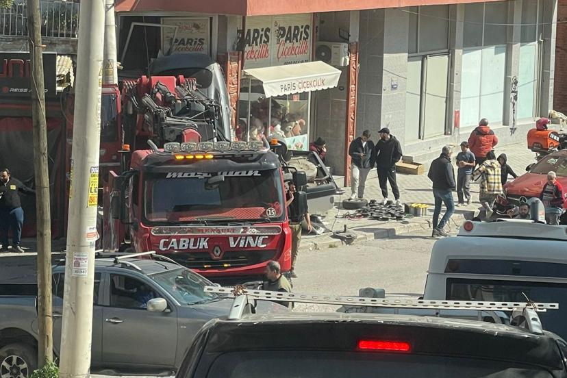İzmir'de freni boşalan vinç park halindeki araçları ezdi