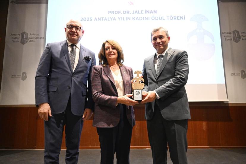 PROFESÖR Doktor Jale İnan 2025 Antalya Yılın Kadını Ödül Töreni gerçekleştirildi. Yılın Kadını Ödülü, Vali Hulusi Şahin tarafından Prof. Dr. Emine Fulya Deniz Sarvan’a takdim edildi.