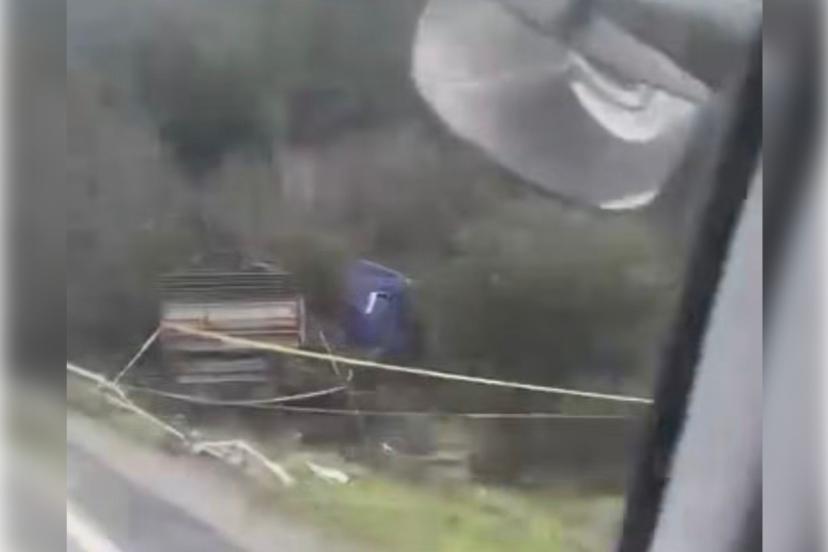 İzmir'in Kemalpaşa ilçesi Karabel inişinde kontrolden çıkan bir kamyonet şarampole devrildi.