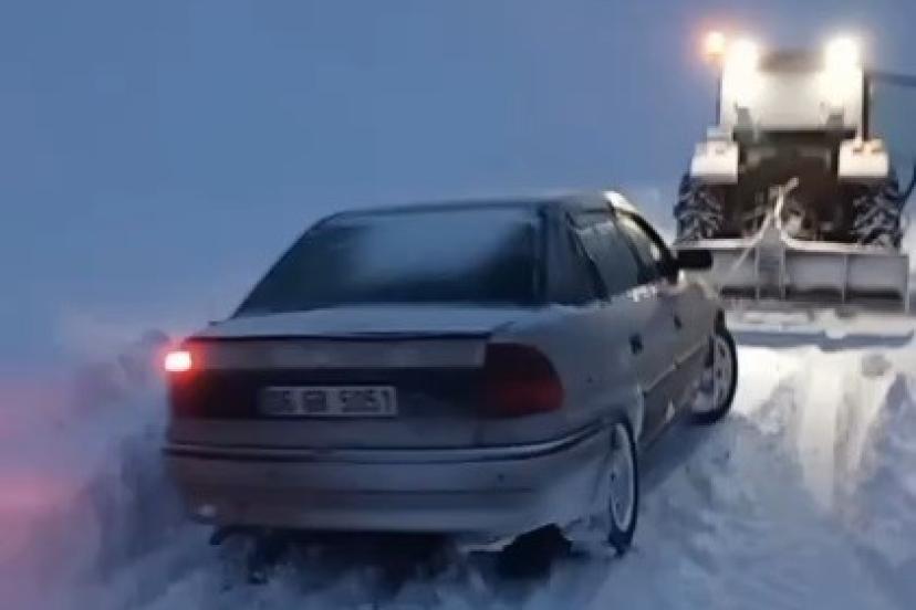 Kars’ta yolda otomobiliyle mahsur kalan bir sürücünün imdadına, çevredeki duyarlı vatandaş yetişti.