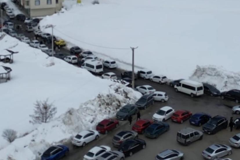 Bitlis’in kış turizminde önemli adreslerinden biri olan El Aman Kayak Merkezi’ndeki yoğunluk havadan görüntülendi.