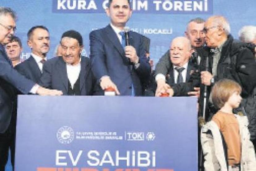 Kocaeli Kongre Merkezi’nde noter huzurunda düzenlenen ‘Ev Sahibi Türkiye Kura Çekimi Töreni’nde 10 bin 340 konutun hak sahipleri belirlendi. Törene katılan Çevre, Şehircilik ve İklim Değişikliği Bakanı Murat Kurum, 500 bin sosyal konut projesi kapsamında da 4 bin 800’ü Kocaeli merkezde, 1.750’si Dilovası’nda, 90’ı Derince’de 1.200’ü Körfez’de, 2 bini Gebze’de, 500’ü Çayırova’da olmak üzere toplam 10 bin 340 konutun inşa edileceğinin altını çizdi.