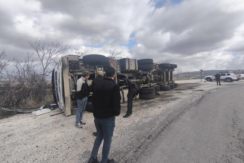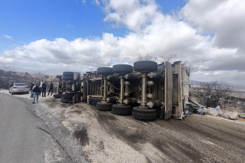 BURDUR-Isparta Dağ Yolunda Tır devrildi, sürücü yara almadan kurtuldu.