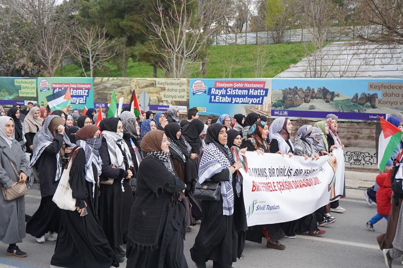 Konya Sivil Toplum Platformu tarafından Gazze’de yaşananlara tepki amacıyla yürüyüş gerçekleştirildi. Kılıçarslan Meydanı’ndan başlayan yürüyüş, Gedavet Parkı’na kadar sürdü.