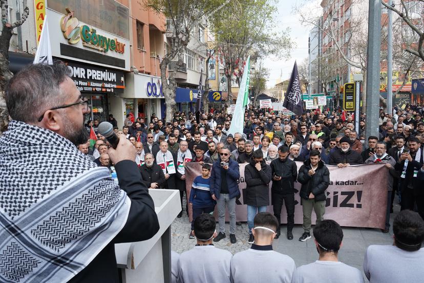 Programda, Konya Sivil Toplum Platformu adına konuşan Adem Ceylan, siyonist rejime yönelik tepkilerini dile getirerek, “israilin tanınmadığını tanımadığı gibi tanımayacağımızı, israilin kendisini tanımadığımızı tekrar ve bir kez tüm dünyaya haykırıyoruz. israil bu coğrafyadan defolup gidinceye kadar mücadeleye devam edeceğiz. israil yıkılmadan, İslam coğrafyasına huzur yok, İslam coğrafyasına refah gelmeyecek ve biz de bütün gücümüzle mücadele etmeye devam edeceğiz.” ifadelerini kullandı.