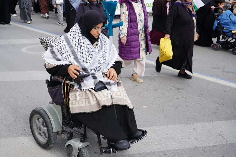 Yürüyüşe sivil toplum kuruluşlarının temsilcileri ile birlikte çok sayıda vatandaş katıldı. Yaşlı, genç ve çocukların yer aldığı etkinlikte katılımcılar, taşıdıkları pankart ve attıkları sloganlarla Gazze’de yaşananlara dikkat çekti.
