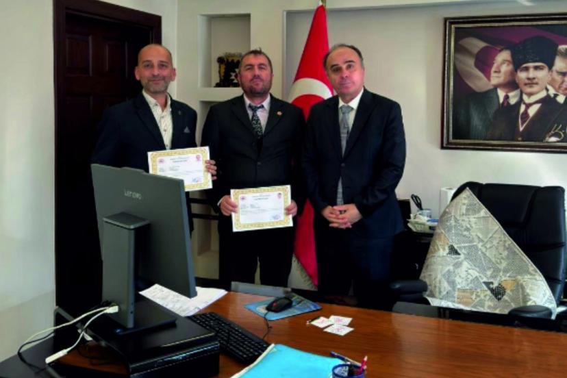 ANTALYA'da Korkuteli Kaymakamı Sezgin Üçüncü, Korkuteli Tapu Müdürü Mustafa Yağcı ile müdür yardımcıları Muzaffer Mete Yalçın ve Yiğit Tarık Kocatürk'e başarı belgesi verdi.