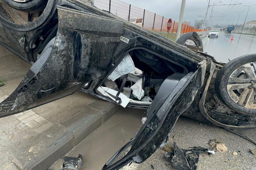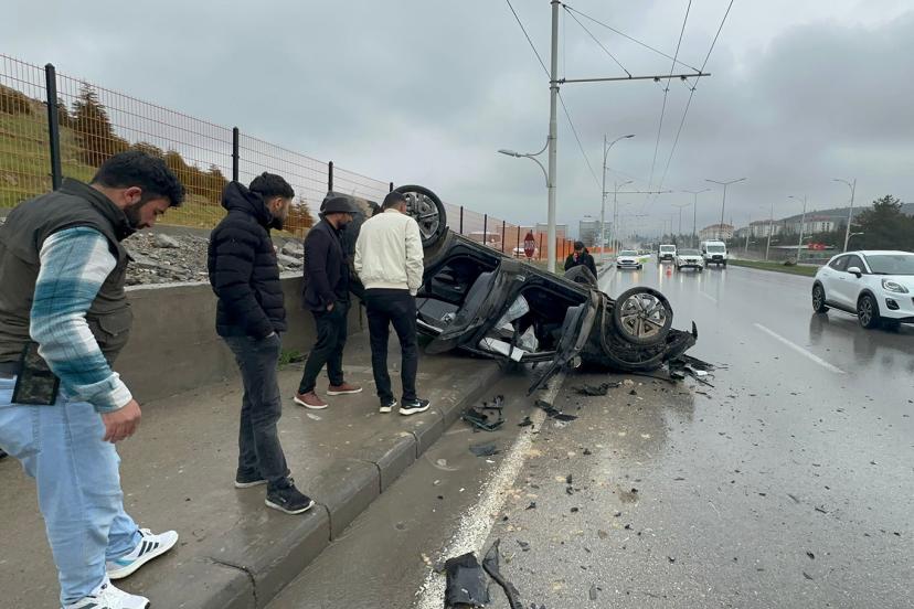 Orta refüjü aşarak karşı şeride geçen otomobil, Ü.E. idaresindeki 44 AES 986 plakalı araçla kafa kafaya çarpıştıktan sonra savrularak ters döndü.
