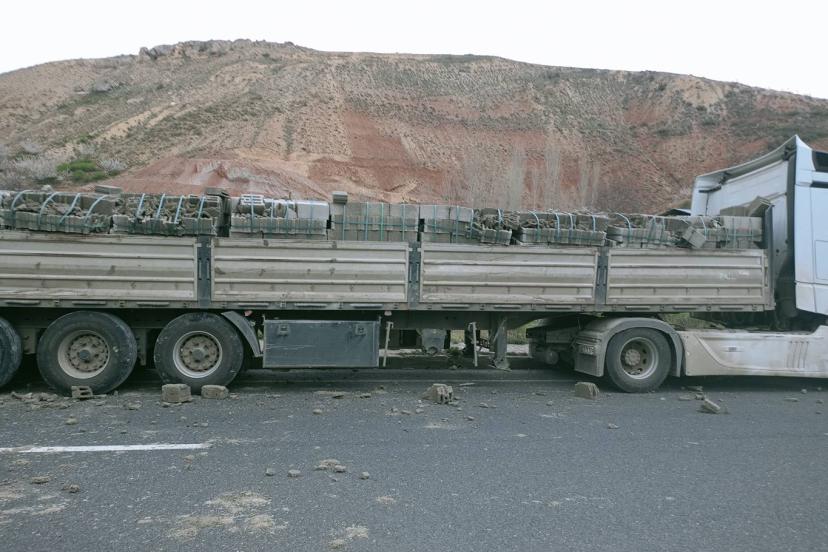 Malatya'da kontrolden çıkan tır karşı şeride geçti