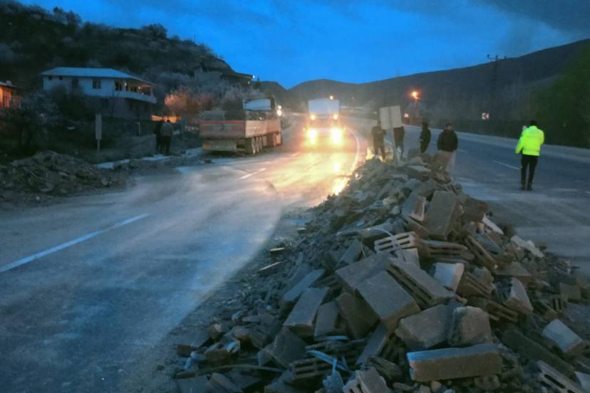 Darende'den Malatya'ya bims taşıyan tır'ın kontrolden çıkarak karşı şeride geçmesi sonucu yola saçılan yük nedeniyle trafik bir süre durdu.