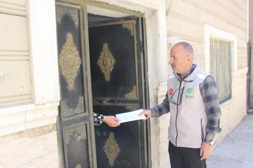 Hayırseverlerin bağışlarıyla yapılan nakdi yardım, Mardin Umut Kervanı yetkilileri tarafından ailelerin kapıları tek tek çalınarak, zarf içinde teslim edildi.
