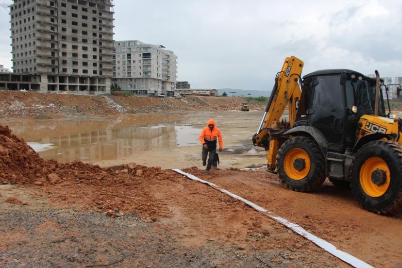 Ekipler, 13 Mart Mahallesi'nde biriken suyun tahliyesi için çalışma başlattı.