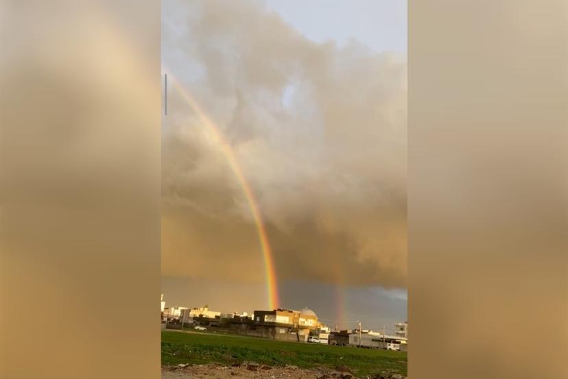 Mardin’in Nusaybin ilçesinde etkili olan dolu ve sağanak yağışın ardından ortaya çıkan gökkuşağı, görsel şölen oluşturdu.