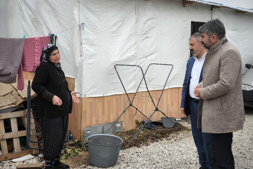 HÜDA PAR Genel Başkan Yardımcısı ve Mersin Milletvekili Faruk Dinç, Malatya'nın Yeşilyurt ilçesindeki Rönesans Konteyner Kent'te depremzedeleri ziyaret ederek sorunlarını dinledi.