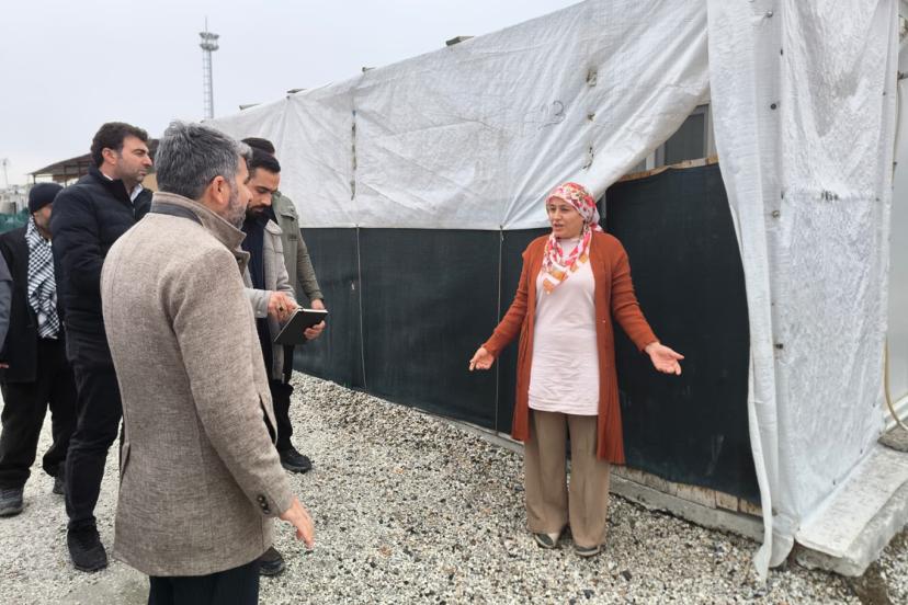 Konteyner kentte yaşayan depremzedeler ise yaşadıkları mağduriyete tepki göstererek Milletvekili Dinç'e yaşadıklarını anlattı.