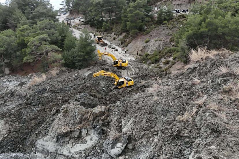 Muğla'da ekipler heyelan nedeniyle kapanan yolu açmak için çalışma başlattı