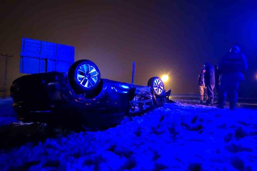 34 MHZ 466 plakalı otomobilin sürücüsü, Muş-Erzurum yolu üzerinde etkili olan karla karışık yağmur nedeniyle kayganlaşan yolda direksiyon hakimiyetini kaybetti. Kontrolden çıkan araç, Muş-Erzurum tabelasına çarptıktan sonra takla atarak şarampole yuvarlandı. Kazada araçta bulunan 2 kişi hafif şekilde yaralandı. Yaralılar, olay yerine sevk edilen ambulansla ayakta tedavi edildi.