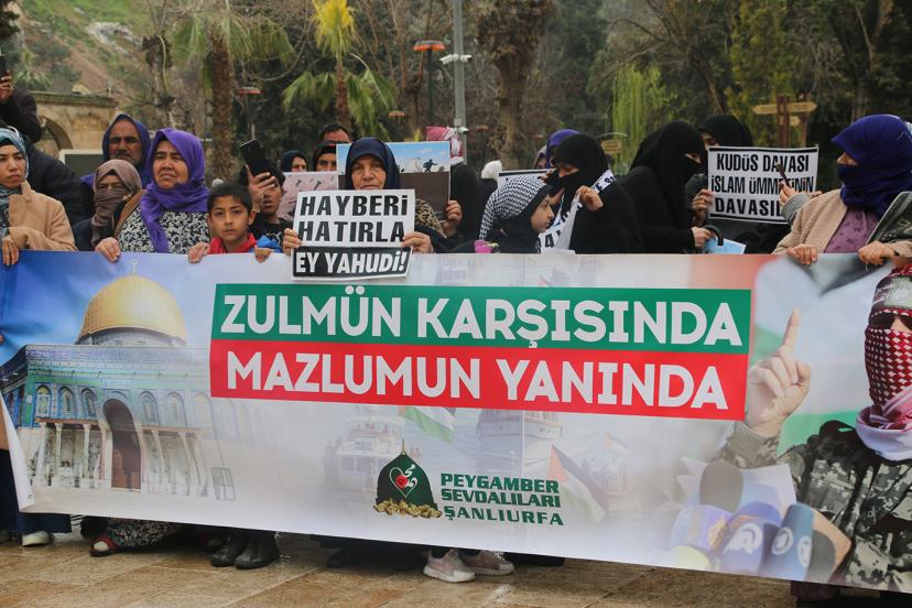 Şanlıurfa’da ‘Dünya Kudüs Günü’ dolayısıyla düzenlenen basın açıklamasında, "Küresel barışın anahtarı Kudüs ve Aksa’nın özgürlüğünden geçmektedir. Siyonizm ve emperyalizmin bu topraklardan sökülüp atılması için tek çare ümmetin vahdetidir." denildi.