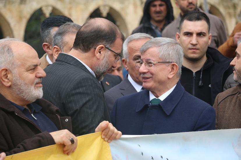 Bazı temasları kapsamında Şanlıurfa’ya gelen eski başbakanlardan Gelecek Partisi Genel Başkanı Ahmet Davutoğlu da Dergâh Camii’nde Cuma namazını kıldıktan sonra basın açıklamasına destek verdi, kısa bir konuşma gerçekleştirdi.