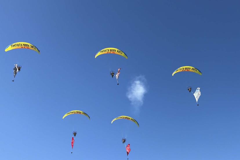 Program kapsamında Türk Hava Kurumu'na ait paramotorlar gökyüzünde gösteri uçuşu gerçekleştirirken, muharip uçak gösterisi de gerçekleştirildi. Vatandaşlar, gökyüzündeki gösterileri ilgiyle izledi.