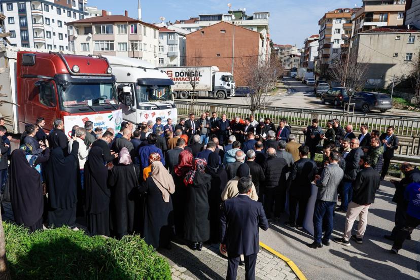 İstanbul Sultanbeyli'de faaliyet gösteren 42 sivil toplum kuruluşu, "İyilik Soğuk Geçirmez" yardım kampanyası kapsamında Gazze, Suriye ve Sudan'a 5 tırlık insani yardım gönderildi.
