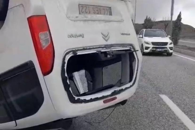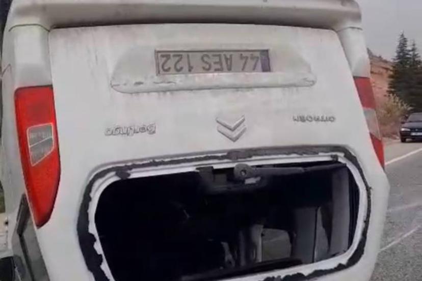 Edinilen bilgilere göre, 44 AES 122 plakalı hafif ticari araç, sürücüsünün direksiyon hâkimiyetini kaybetmesi sonucu kontrolden çıkarak, yolun ortasında ters döndü.