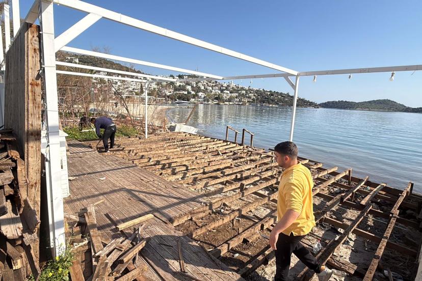 Türkbükü'nde kaçak iskele ve yapılar yıkıldı